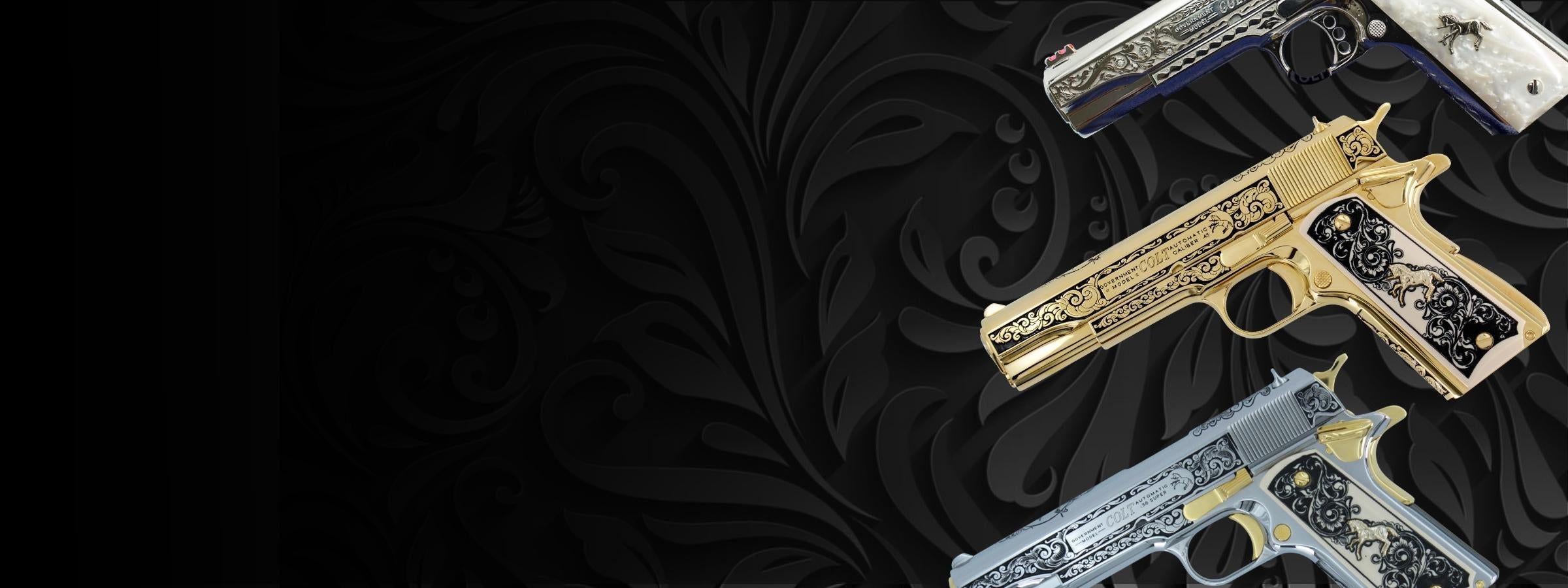 Rock Island 1911 Standard FS, 45 ACP, Classic Scroll engraved, 24 karat Gold and Black Chrome plated