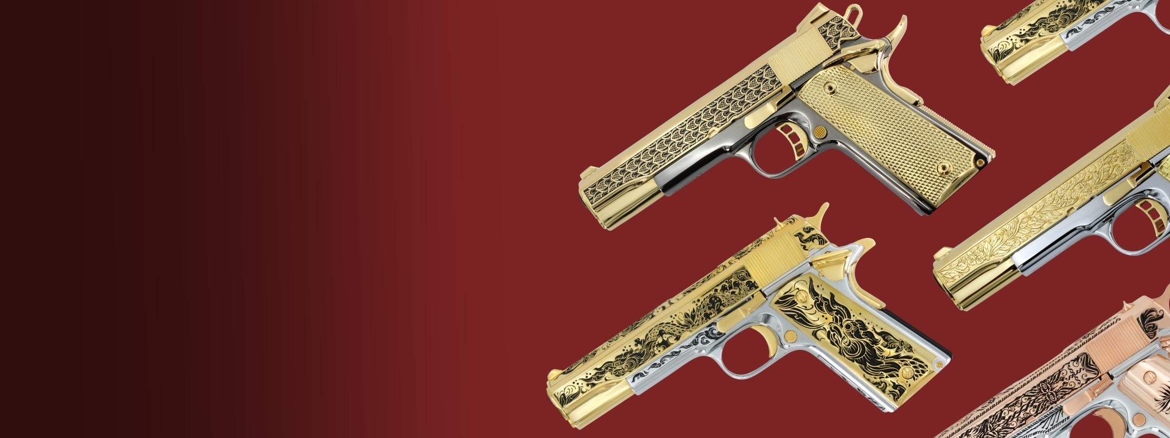 Rock Island Armory 1911-A1, 45ACP, Lotus Leaf Design, 24k Gold Plated Slide & Accents, with a Black Chrome Finished FrameVendor:Rock IslandRock Island Armory 1911-A1, 45ACP, Lotus Leaf Design, 24k Gold Plated Slide & Accents, with a Black Chrome Finished Frame- Regular price