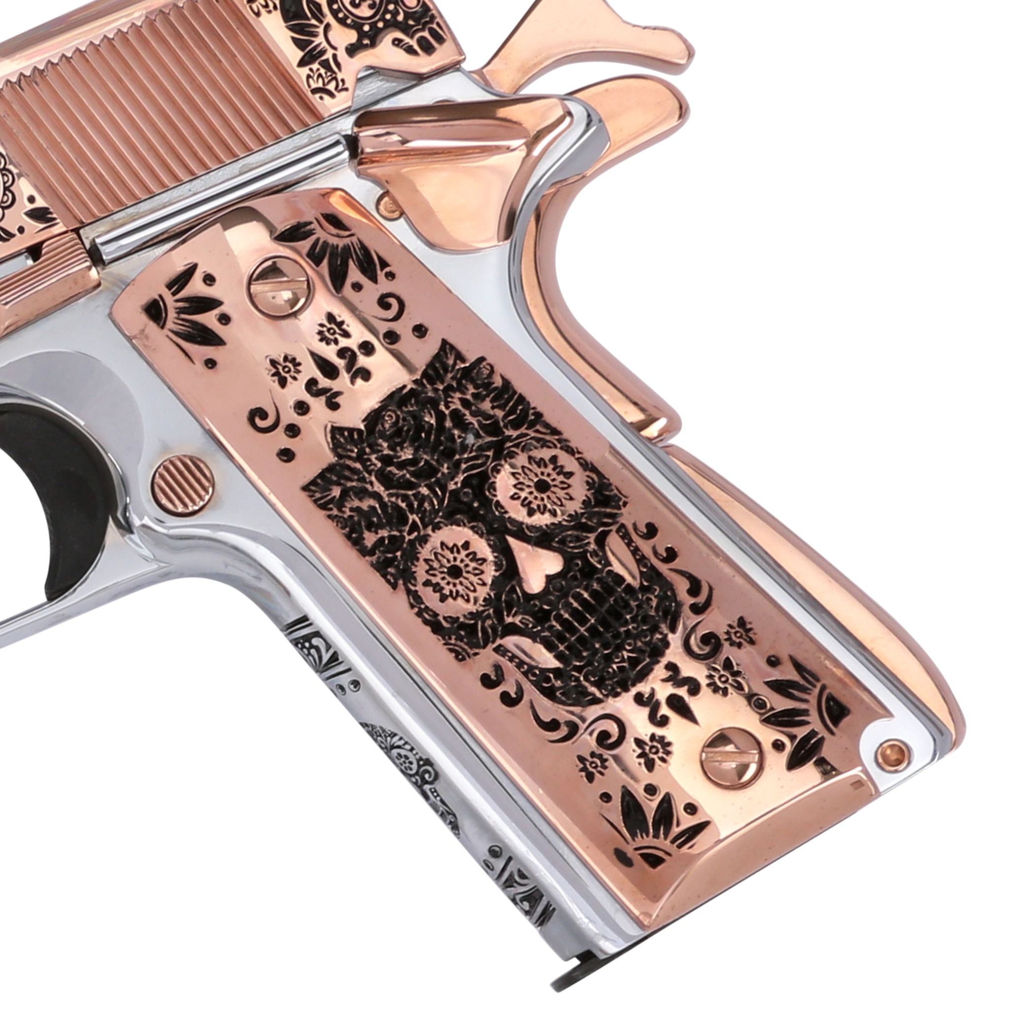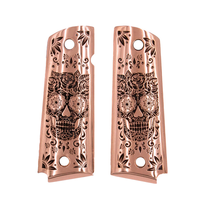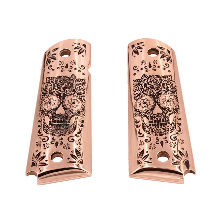 Rose Gold Catrina Engraved Full Size 1911 Grips